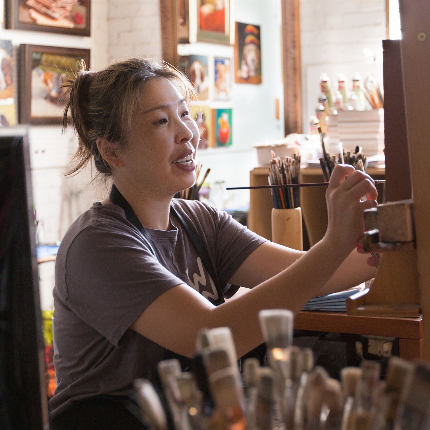Through my oil paintings, I morph everyday human experiences into an alternate universe where an animal is just as likely as a person to sit down to some light reading, brush their teeth before bed, or profess their undying love for another through some grand gesture. My body of work aims to simultaneously make light of, and marvel at, our uniquely human existence.